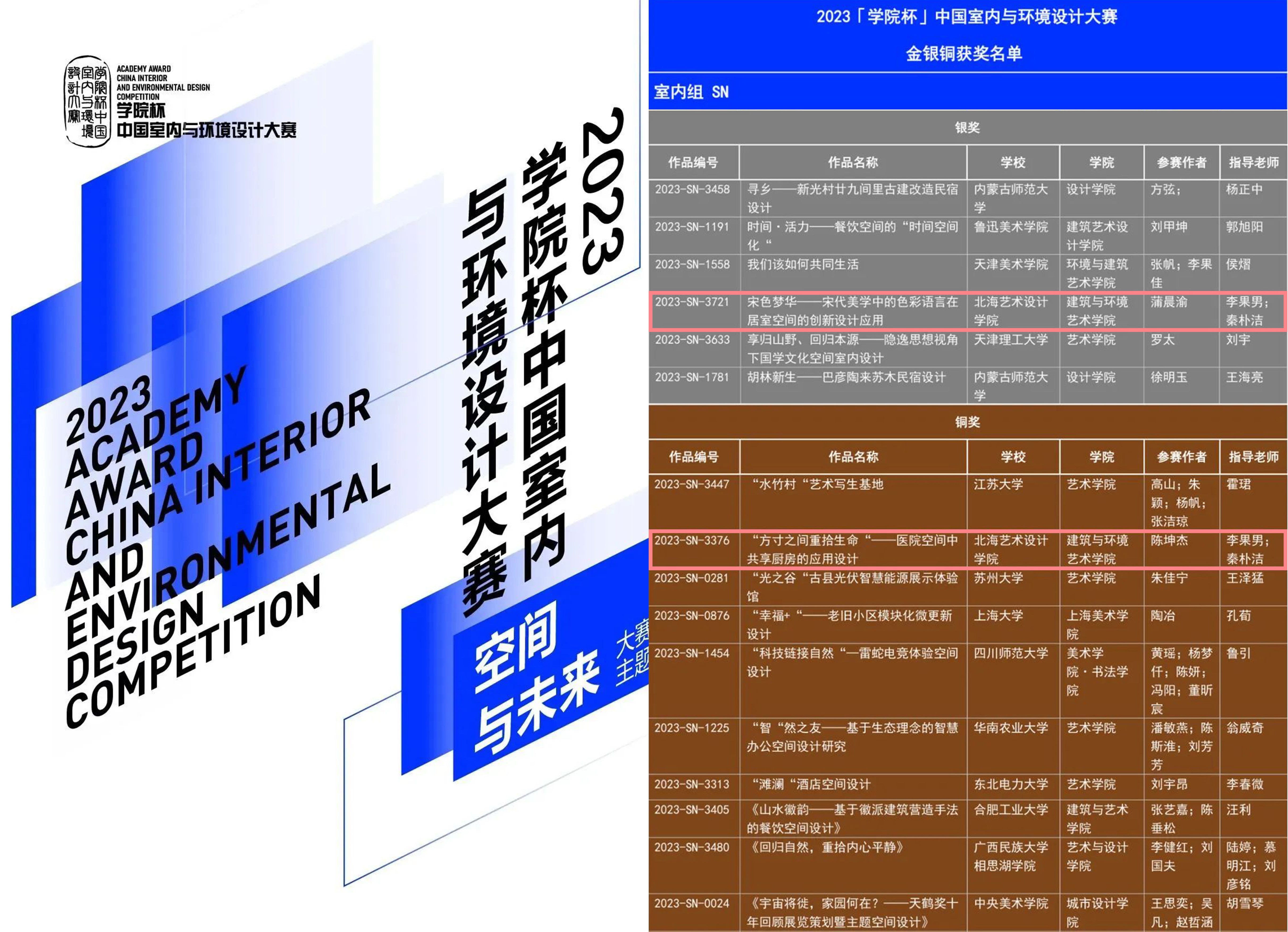 北海艺术设计学院建筑与环境艺术学院在近日揭晓的2023年“学院杯”中国室内与环境设计大赛中再获佳绩。