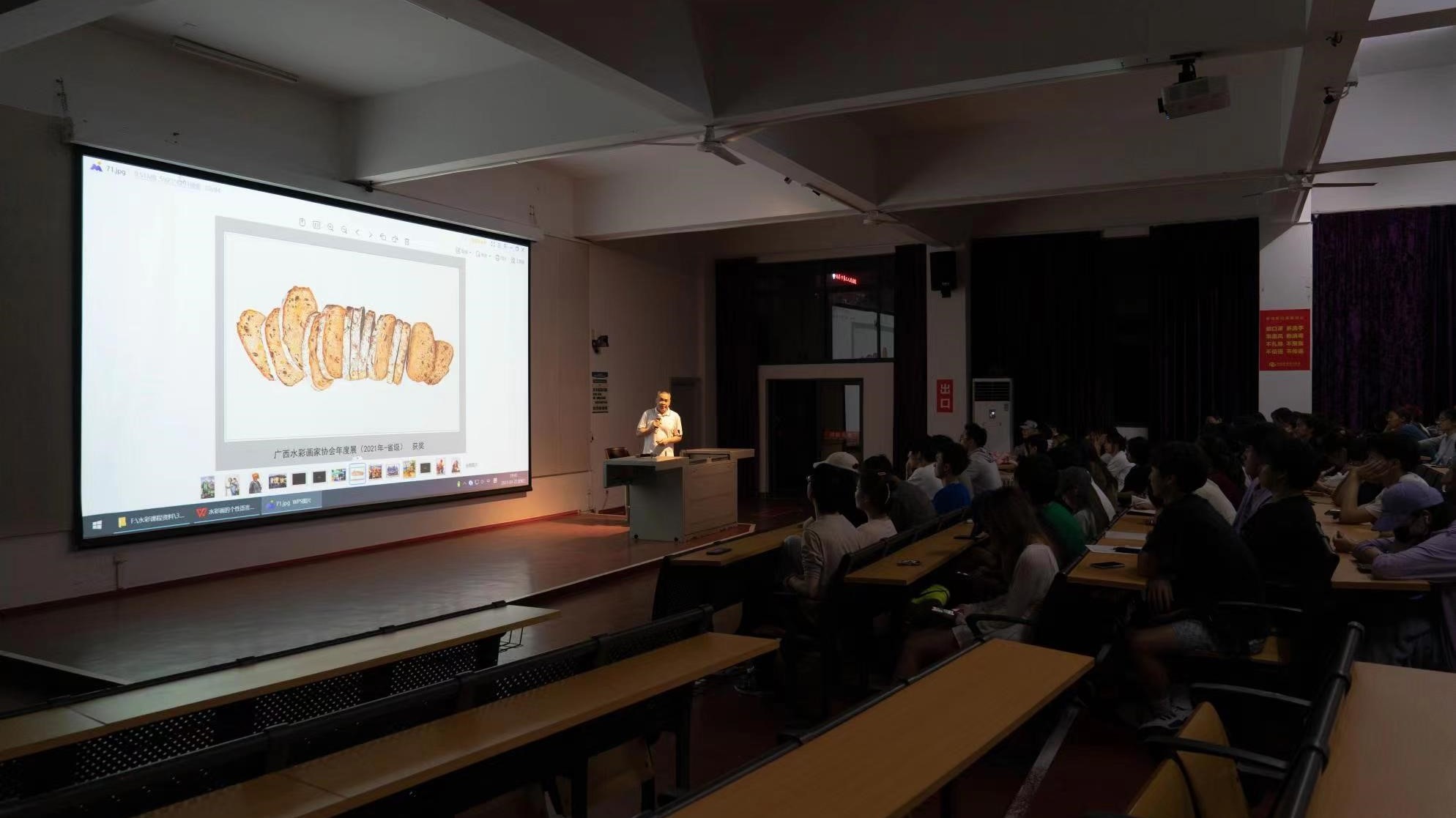 最后,讲座在广大师生的热烈掌声中圆满结束,同学们通过此次讲座对水彩画的语言以及美术作品的创作有了更为深刻的认识。(麦振龙 摄)