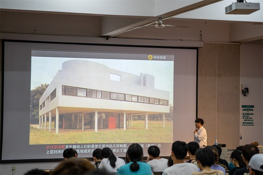 紧接着,陆志成教授将视角转换到中国近现代建筑演变,通过介绍他自身设计的相关作品案例,分享其在建筑设计过程中的相关思路与方法,让现场师生更加清晰明了地掌握建筑设计的过程,也为广大师生以后的作品设计提供了宝贵的方法经验。
