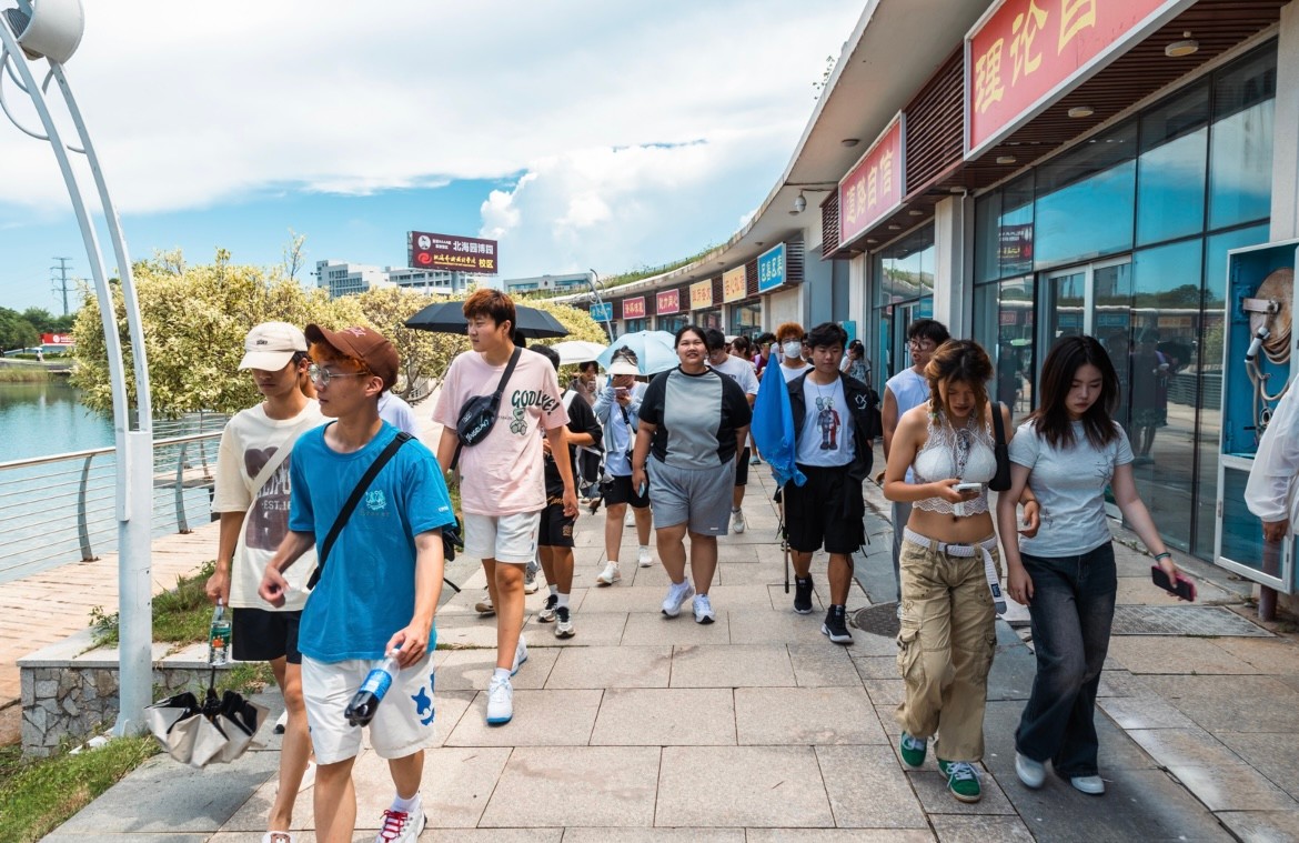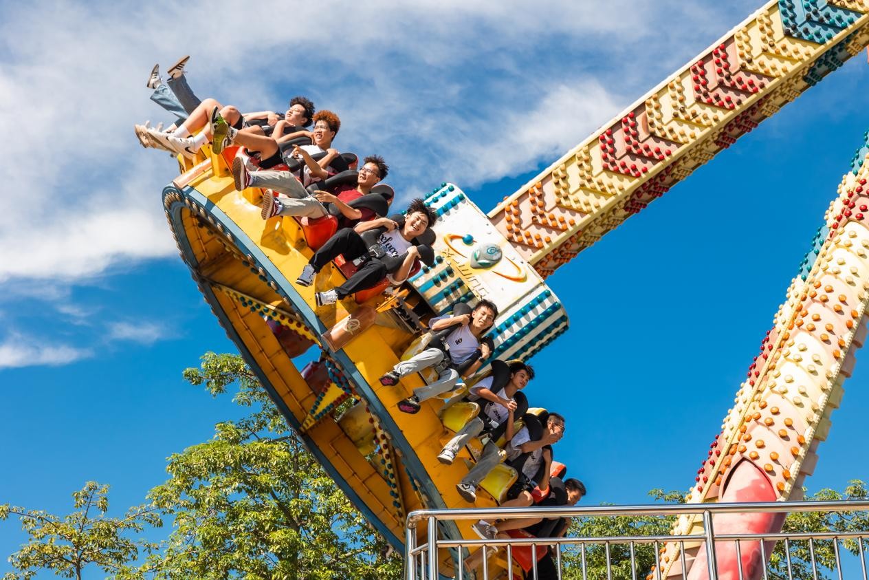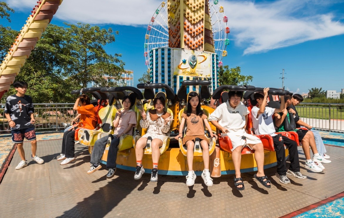 同学们在各类项目设施中游玩体验在惊叹与呼喊声中体会欢乐与成长,游乐其中逐渐熟悉解彼此,更好让大家融入新的集体,大家欢笑声一片其乐融融,充分展现北艺新生积极向上的精神风貌。火热骄阳下的园博园校区同样为同学们提供了空调休息室,为游园活动之余留出休憩的空间。