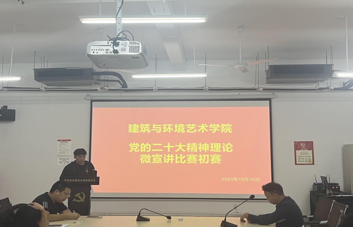 为全面贯彻落实习近平总书记对广西“五个更大”重要要求和视察广西“4·27”重要讲话精神,引导全体学生学思践悟党的二十大精神,深刻领悟“两个确立”的决定性意义,增强“四个意识”,坚定“四个自信”,坚决做到“两个维护”,推动党的创新理论走进青年、深入人心,建筑与环境艺术学院第二党总支于2023年10月10日在公德楼507开展党的二十大精神理论微宣讲初赛,本次初赛共计17人参加,学生第一党支部书记刘杰、第二党支部书记谭积钻进行总结点评。
