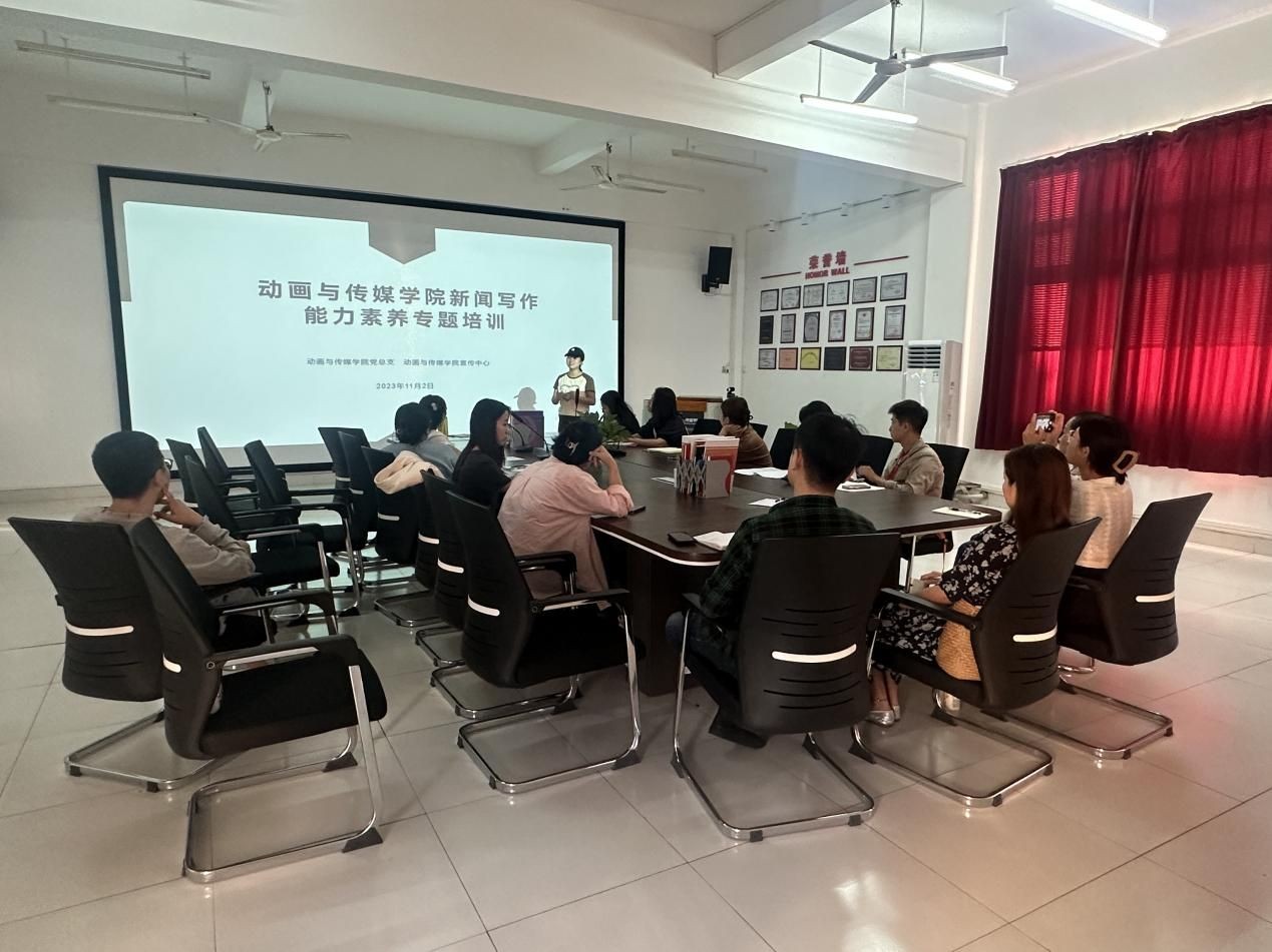 为推动动画与传媒学院新闻宣传队伍建设,适应新形势、讲好新故事,提升学院新闻宣传队伍的专业水平和整体素养,促进学院宣传工作再上新台阶112动画与传媒学院组织开展新闻能力素养专题培训。学院党总支书记张帆、各党支部宣传委员、各部门通讯员参加培训,培训由学院宣传中心龙盈迎主持。