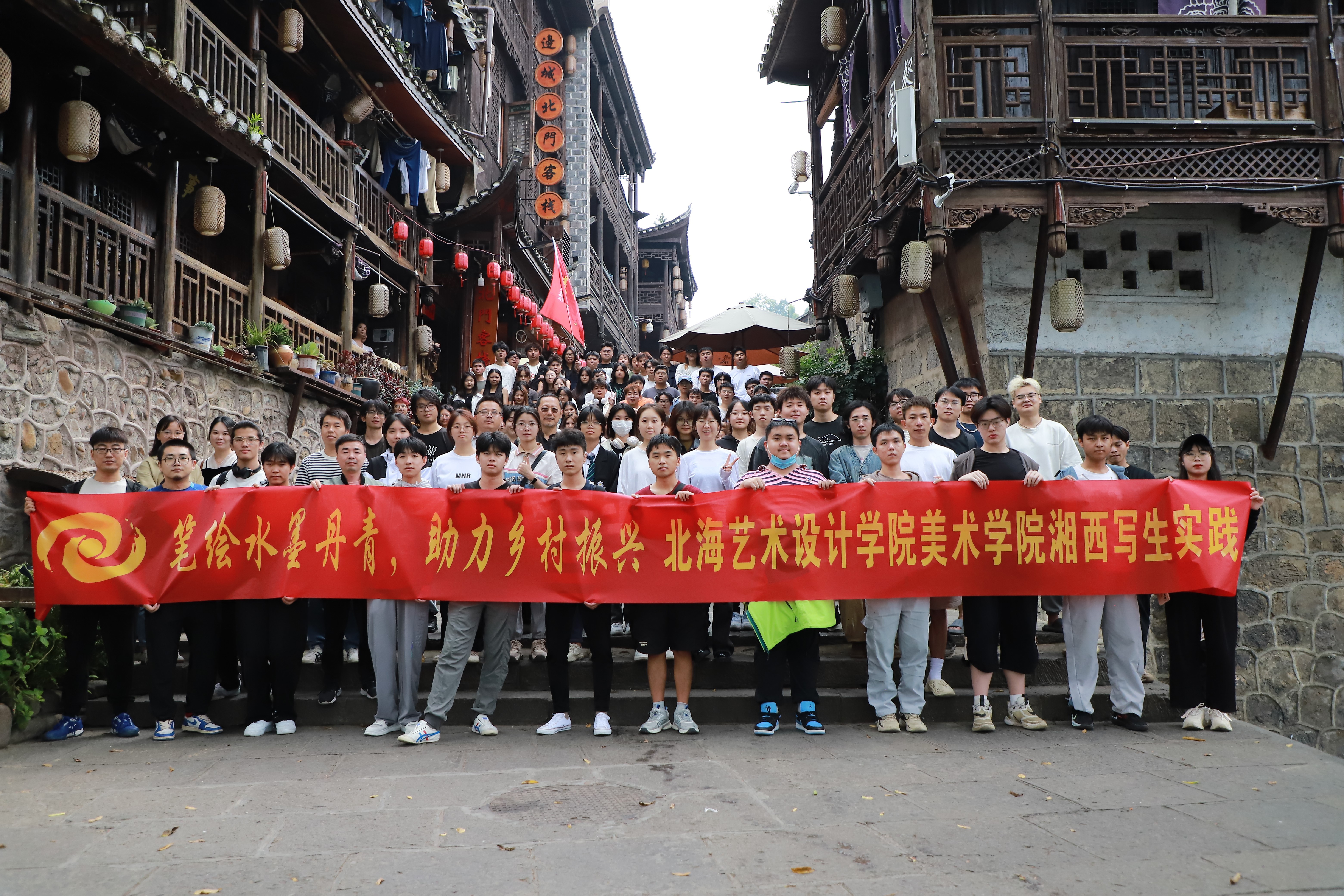 202310月,秋高气爽,北海艺术设计学院美术学院教师带领绘画专业20212022级学生在刘斌教授、曲湘建教授、石强教授及龚为院长的带领下分别前往湘西凤凰、三江侗寨进行采风写生实践。户外写生是绘画专业实践教学的重要环节,为丰富学生的绘画技巧,提升观察能力,体会艺术来源于生活又高于生活的含义。