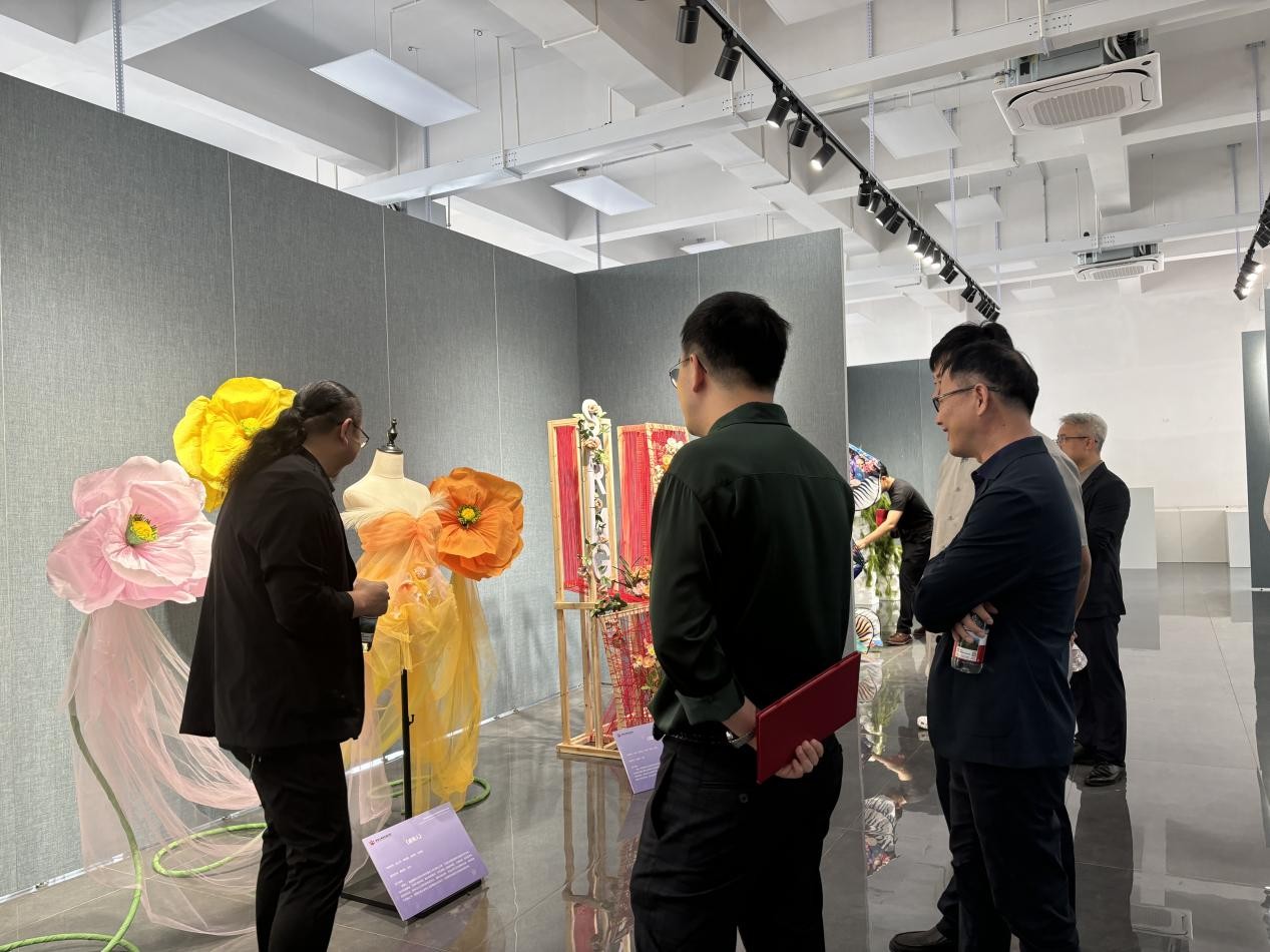 在最后的观展互动环节,现场气氛热烈非凡。各组参展学生们满怀热忱,纷纷化身为“作品代言人”,他们以自信且专业的姿态,将自己小组在创作过程中的奇思妙想、攻克的重重难关以及蕴含其中的设计理念娓娓道来,生动地展现出作品背后的故事,力求让领导、嘉宾和老师们全方位领略作品的魅力。与此同时,他们还展现出了极高的学习热情与谦逊态度,专注地聆听着领导、嘉宾和老师们提出的宝贵指导意见。整个互动环节,思想碰撞出的火花四处绽放,为这场美陈展增添了别样的精彩与深度。
