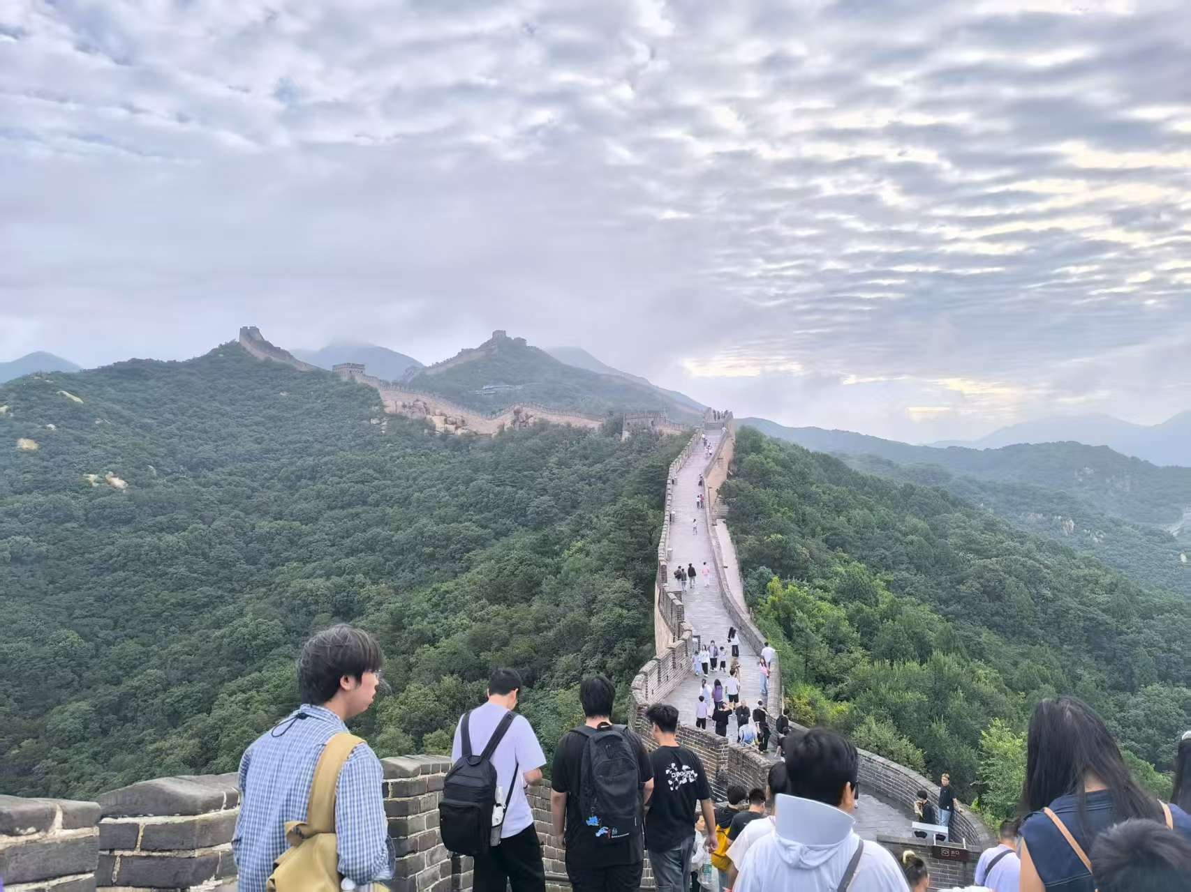 “不到长城非好汉”,8月24日上午前往八达岭长城,开展以“感悟长城精神,增强文化自信”为主题的实践考察活动。长城不仅是中国古代军事防御工程的奇迹,更是中华民族团结奋进、自强不息精神的象征,而散布在长城关隘、阁楼中的题刻与匾额,也成为书法艺术与民族精神融合的独特载体。当日清晨,站在长城之巅,远眺群山连绵、城墙如巨龙盘踞,学生们无不被眼前的雄伟景象所震撼。