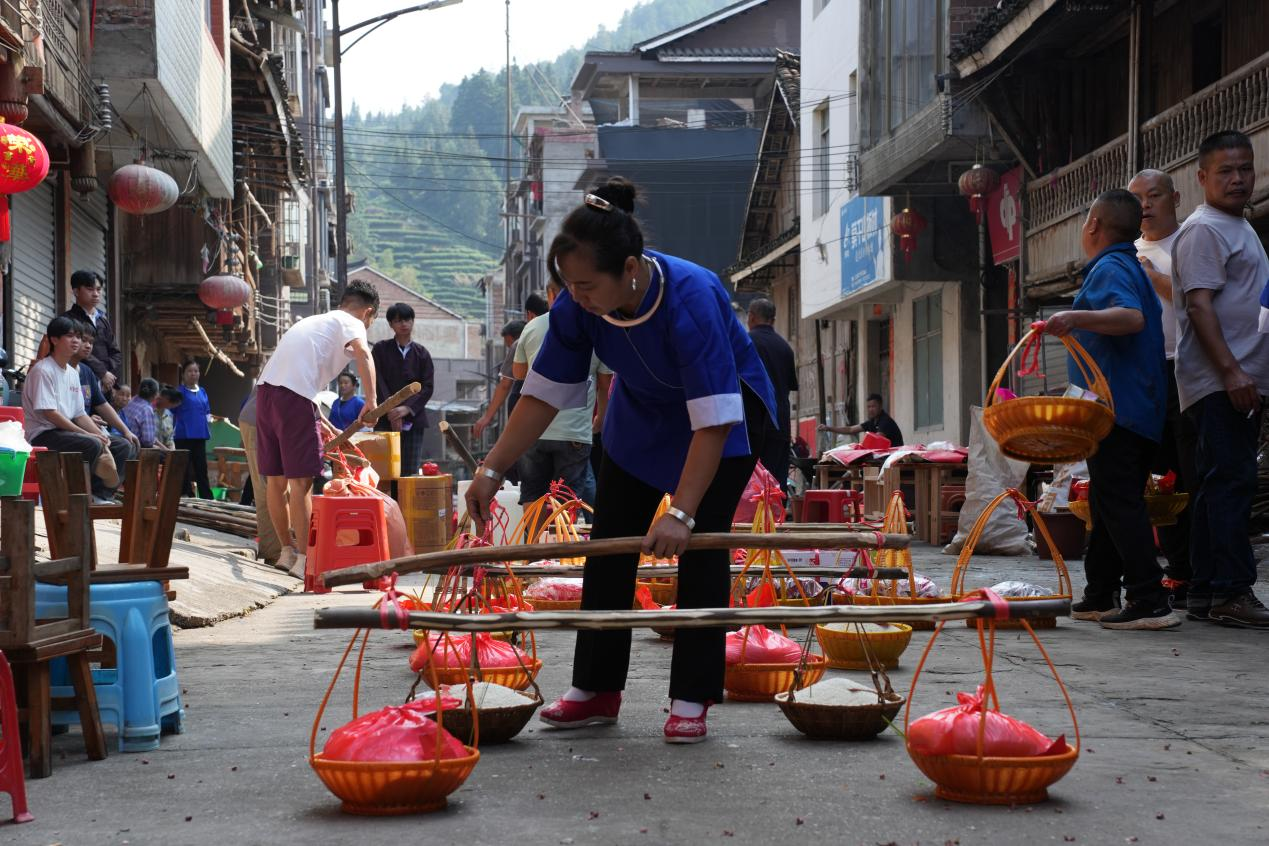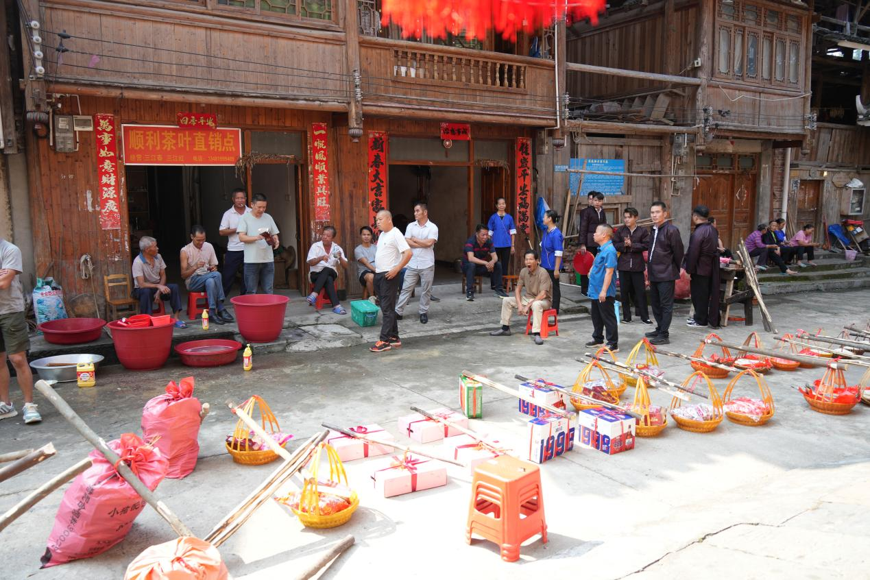在具有浓郁民族风情的三江程阳八寨,采风活动迎来了意想不到的精彩。同学们有幸偶遇了侗族传统的结婚回门礼,大家迅速调整拍摄计划,用镜头敏锐地捕捉了这一极具文化价值的民俗场景,真实记录了侗族婚俗的独特魅力。