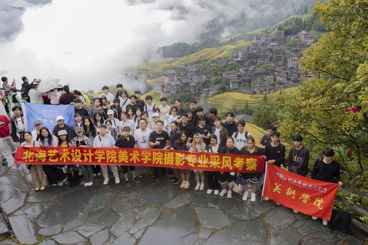 2025年10月13日至19日,美术学院摄影专业2023级55名同学与雕塑专业26名同学在副院长殷声、摄影教研室副主任李伟民、李念平教授及雕塑教研室秘书林盼鑫的带领下,前往桂林象鼻山、龙脊梯田及三江程阳八寨,圆满完成了为期七天的《专业素材采集》专业采风课程集中实践教学。