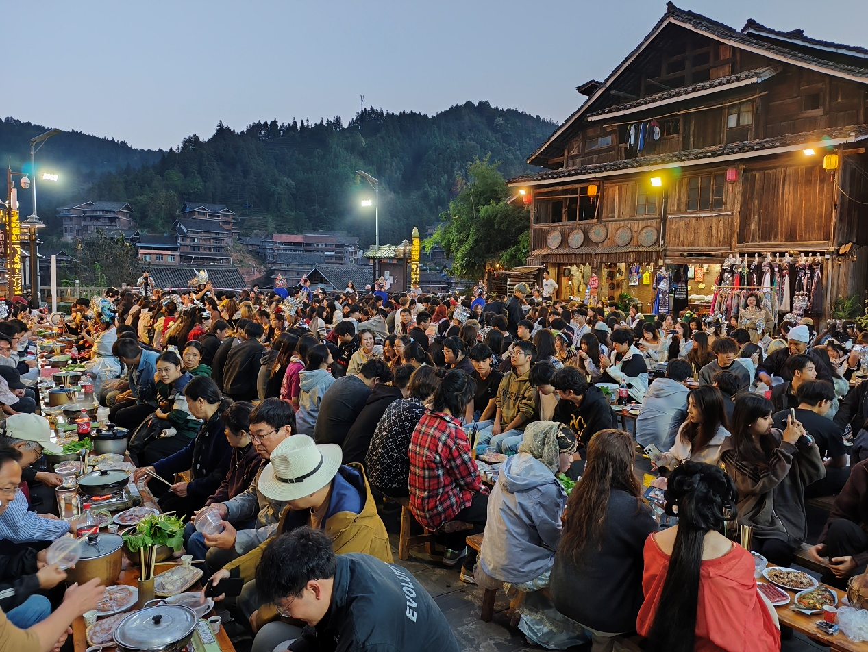 学生参加百家宴活动对歌现场
