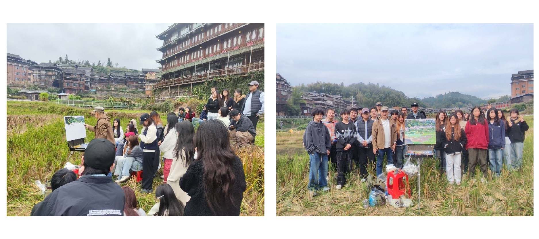 10月27日至11月5日,2024级绘画专业、美术学专业在院长刘斌、执行院长龚为、领队教学副院长肖玺、副领队绘画教研室主任刘勇生的带领下,师生共383人前往独具民族特色的柳州三江,开展了为期10天的采风写生实践活动。此次教学活动将美术课堂延伸至自然与民族文化现场,落实了专业实践性教学要求。