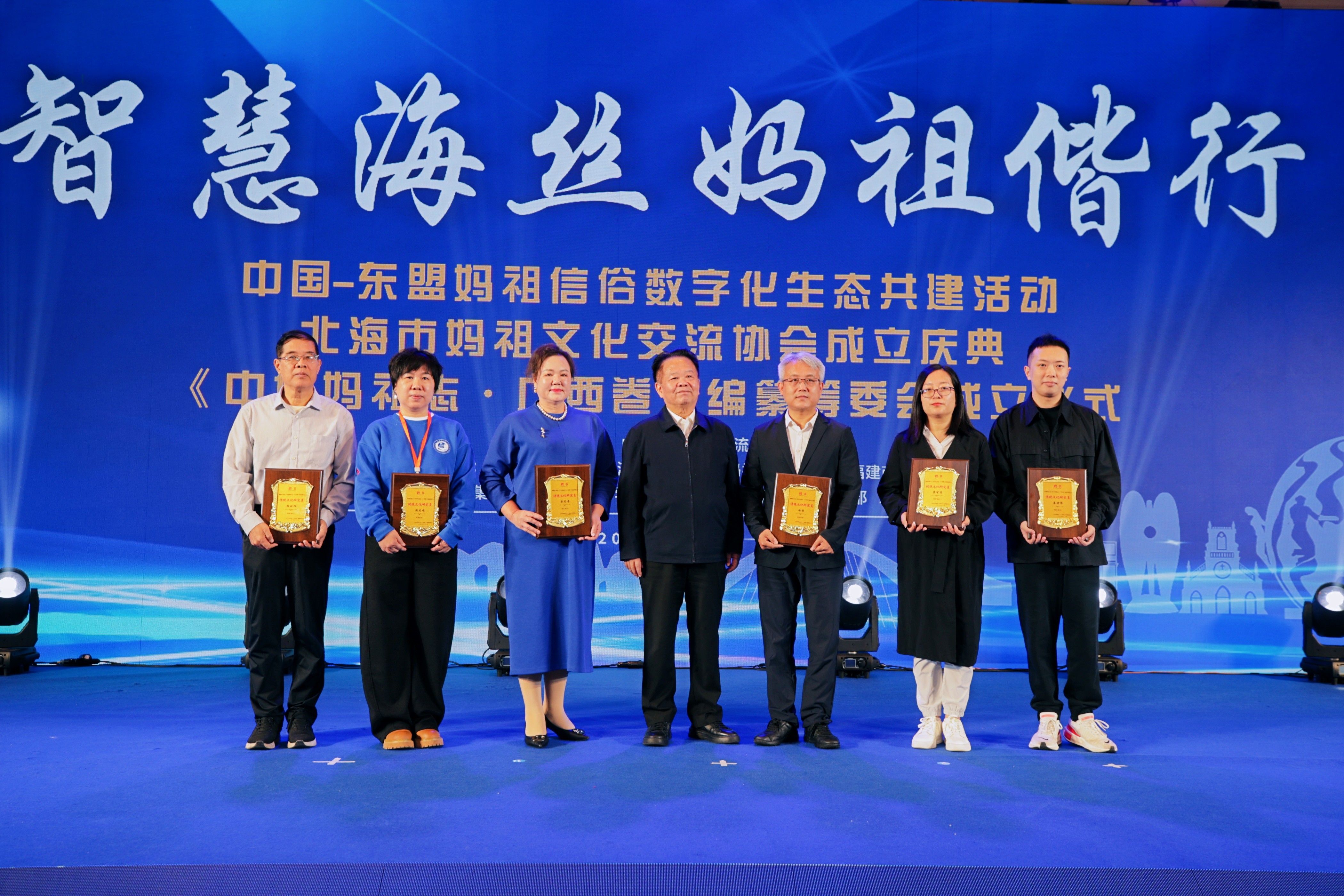 在同期举行的中华妈祖志广西卷编纂委员会成立仪式上,建筑与环境艺术学院院长张春东,以及传统文化研究员梁思齐、谢秀娟、徐坚、庞华坚、蔡世伟、冀智清、陈欧阳、杨明受邀担任编纂委员会成员,接受了中华妈祖文化交流协会常务副会长俞建忠颁发的聘书,标志着我院在妈祖文化学术研究与文献整理领域正式发挥骨干作用。