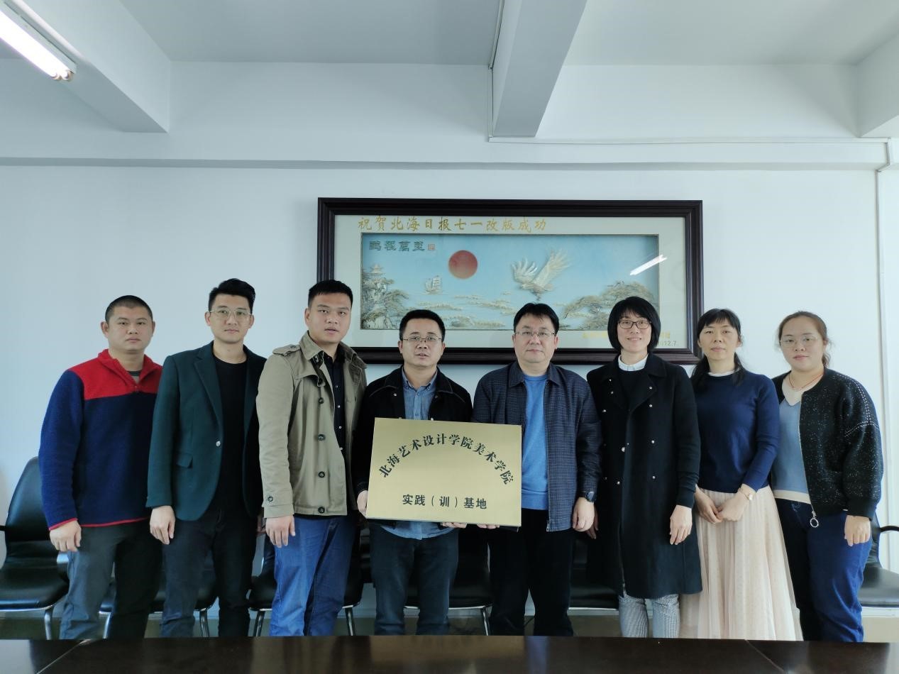 202217日上午,北海艺术设计学院第五总支部书记韩玮、龚为副院长一行赴北海日报社举行校企合作挂牌仪式。北海日报社党委副书记、总编辑李军对我院一行表示欢迎,并对报社的基本情况做了介绍,同时也对我校基本情况、专业建设、以及就业情况进行更深一步的了解,高度赞扬我校办学以来在服务地方经济建设所赢得的良好口碑,并在“思政”、“新闻拍摄”、“宣传”等题材的拍摄明确了业务标准,预祝双方在人才培养和输送上实现双赢局面。报社总编助理、融媒体采访中心主任严丹介绍了社里“融媒体”的业务岗位需求。融媒体发布中心负责人李维维针对校企对接的人才培养方向提出需求,欢迎数绘专业学生参与到“海报突击队”的实践当中。