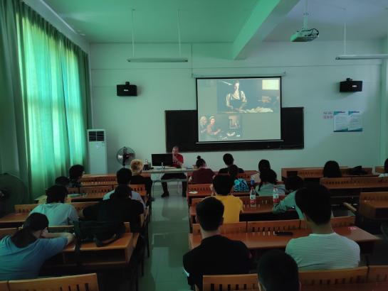 随后,何老师在艺术楼314多媒体教室为同学们讲授了一堂专门针对如何解决油画创作中具体问题的课程,课程涉及古代和现当代绘画创作的经典构图样式、色彩的运用以及如何有效的处理创作素材等。