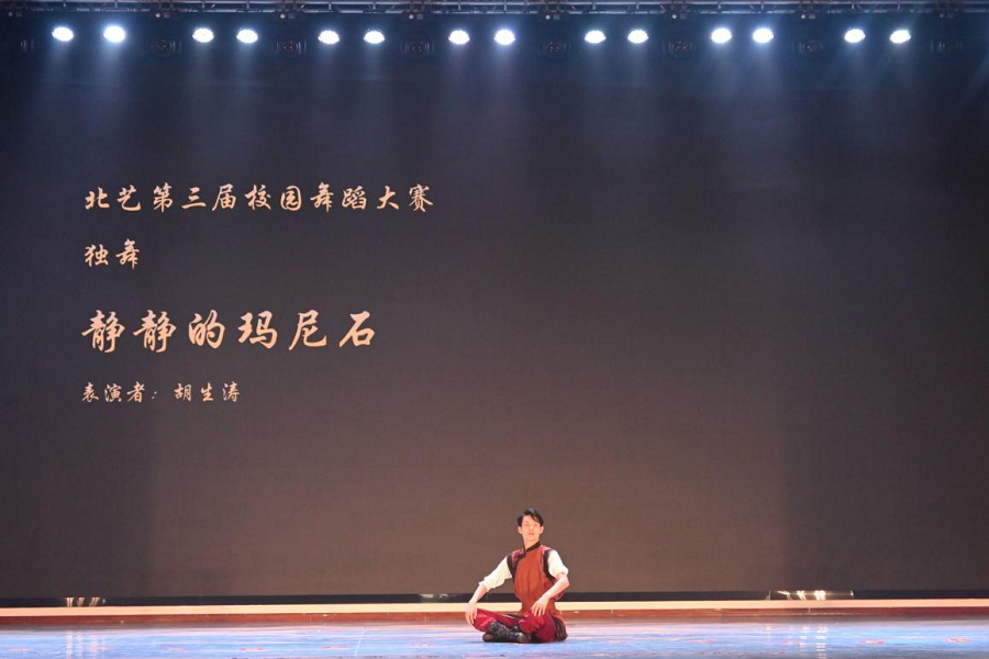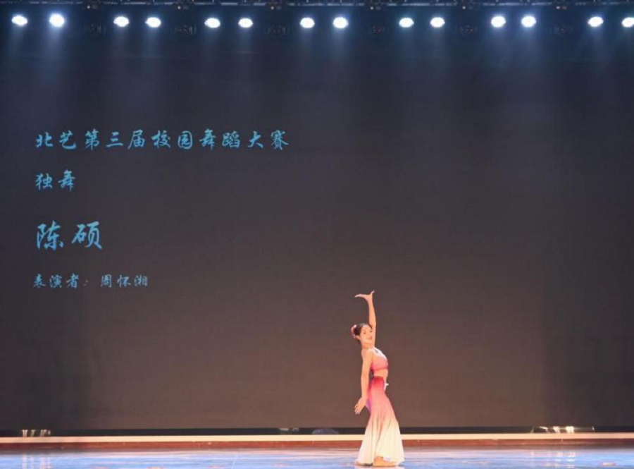 下午场是专业舞蹈“独双三”组的比赛,同学们用优美的肢体语言展现活力风采,青春之花在北艺校园绽放,表达了“一心跟党走,齐舞向未来”的情感。