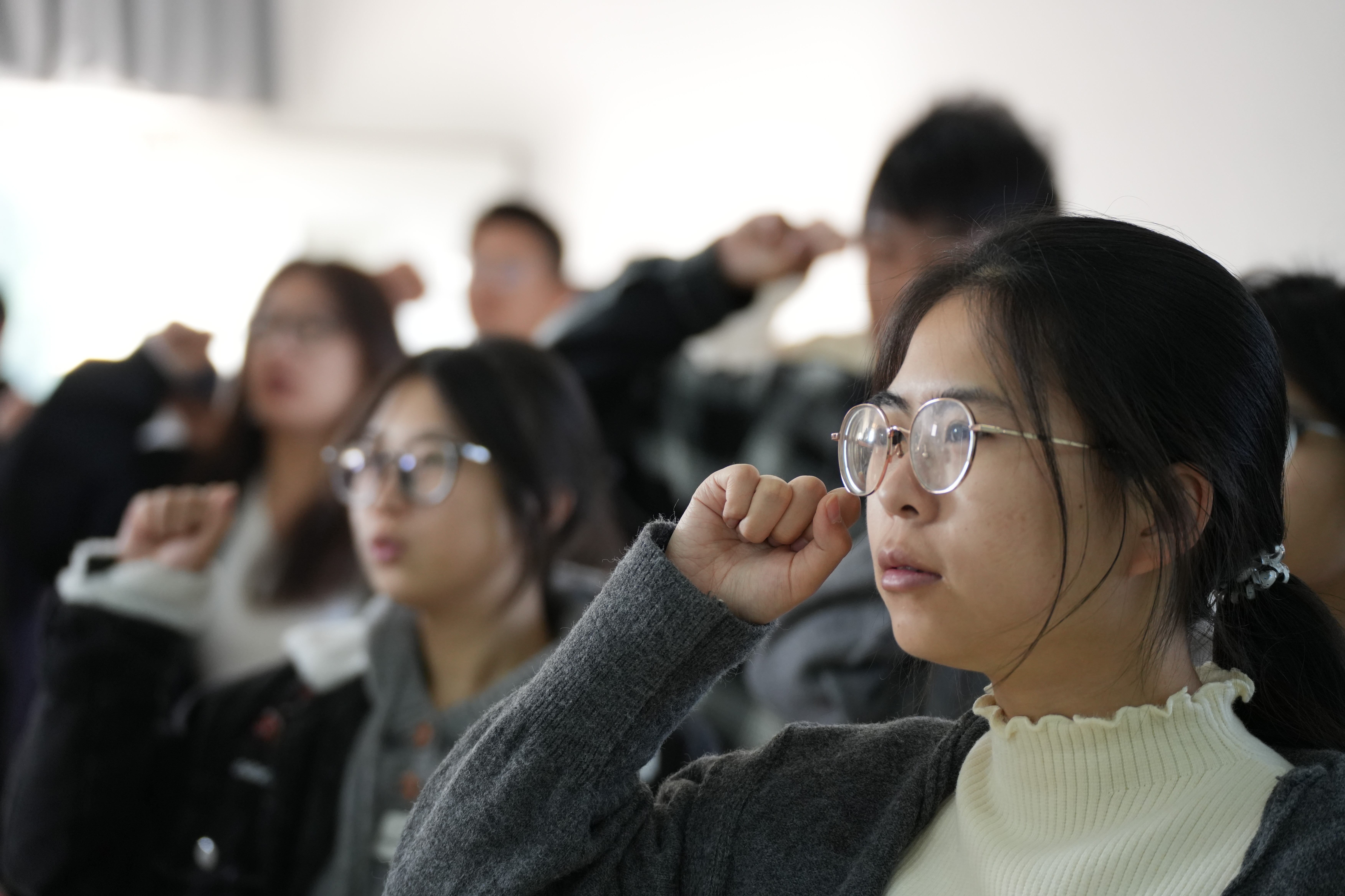 随后,哲学学院新发展团员陈嘉燕同学作为学员代表发言,表达了对本次青马工程培训班的期待,并带领全体学员重温入团誓词。