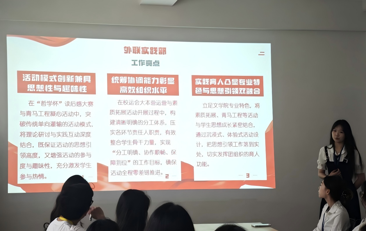 此次述职会议既是对阶段性工作的全面总结与复盘,也是团队成员交流学习、共同成长的重要契机。未来,文学院分团委学生会将以此次会议为契机,持续总结工作经验、补齐工作短板,不断优化工作流程、提升工作效能,立足文学院专业特色,打造更多贴合学生需求、彰显人文底蕴的精品校园活动,以更加饱满的工作热情、更加务实的工作作风,切实服务全院师生,助力学院学生工作高质量发展。(方琴/摄)