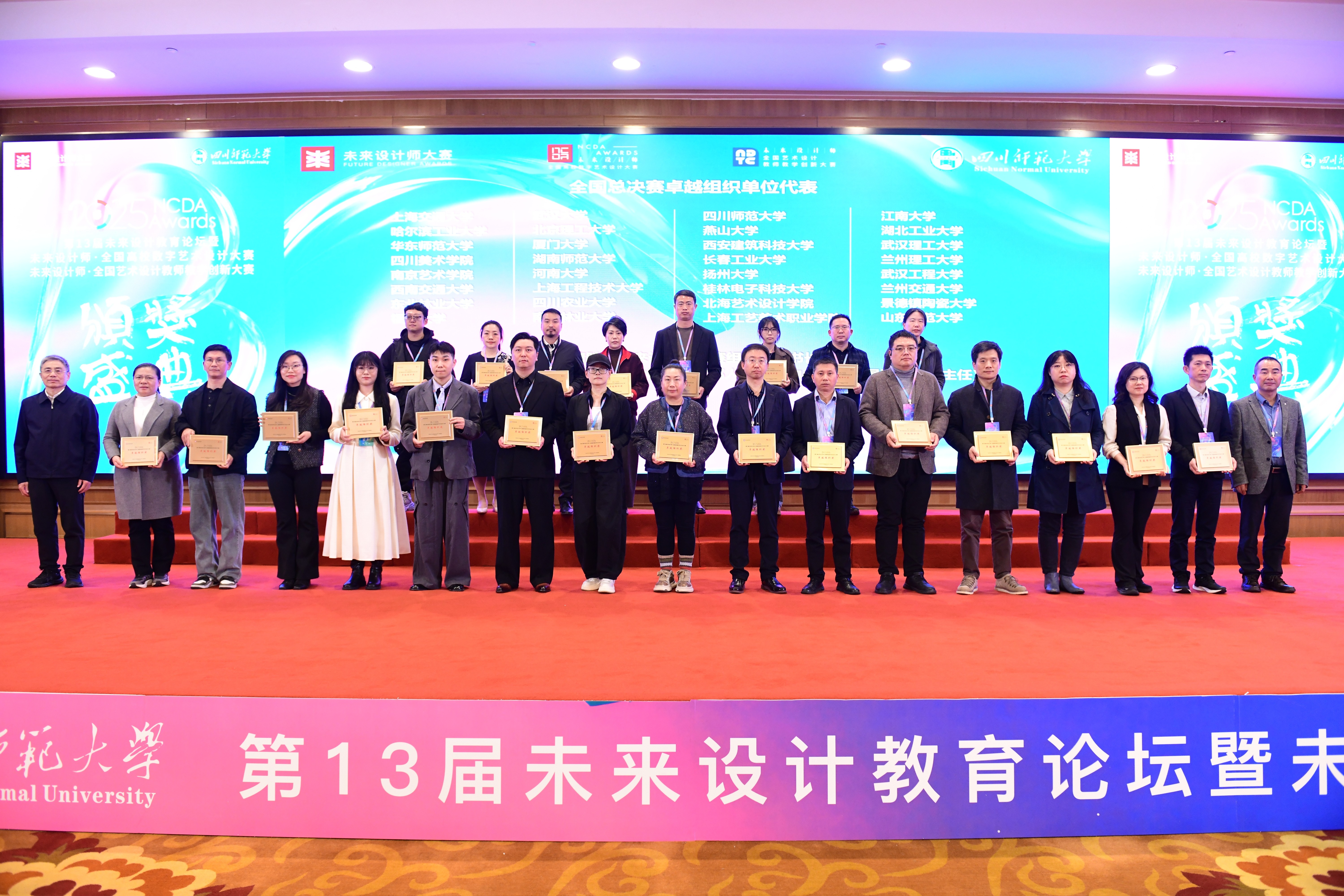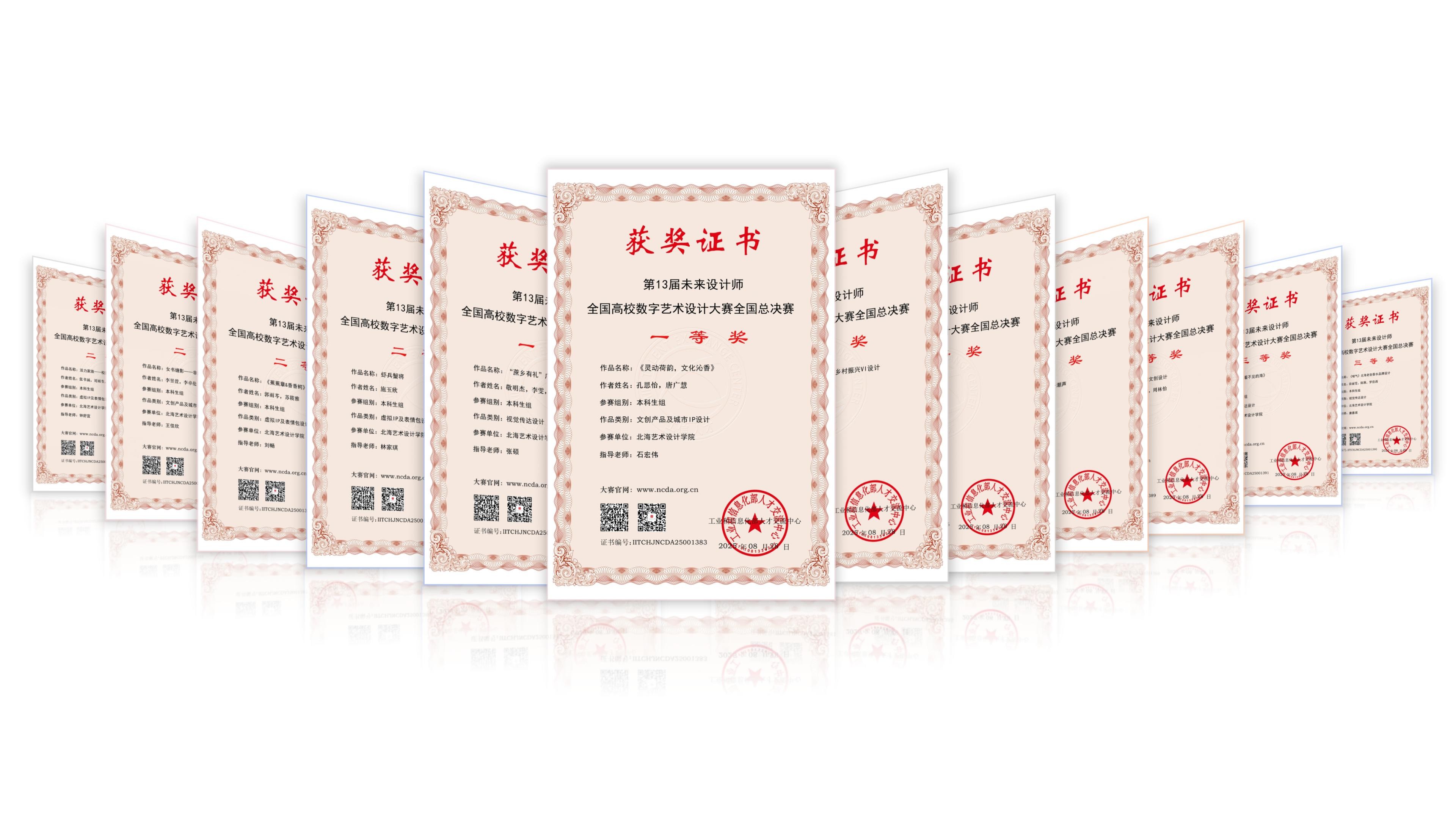 11月23日举行的第13届未来设计教育论坛暨NCDA颁奖典礼上,我院再创佳绩:师生团队共摘得全国一等奖3项、二等奖5项、三等奖4项;白建强、陈琛、贾政波等12位教师获评“优秀指导教师”;学校凭借完善的组织工作与突出的参赛成效,荣膺大赛“卓越组织奖”,全方位展现了我院在艺术设计教育与教学创新领域的综合实力。