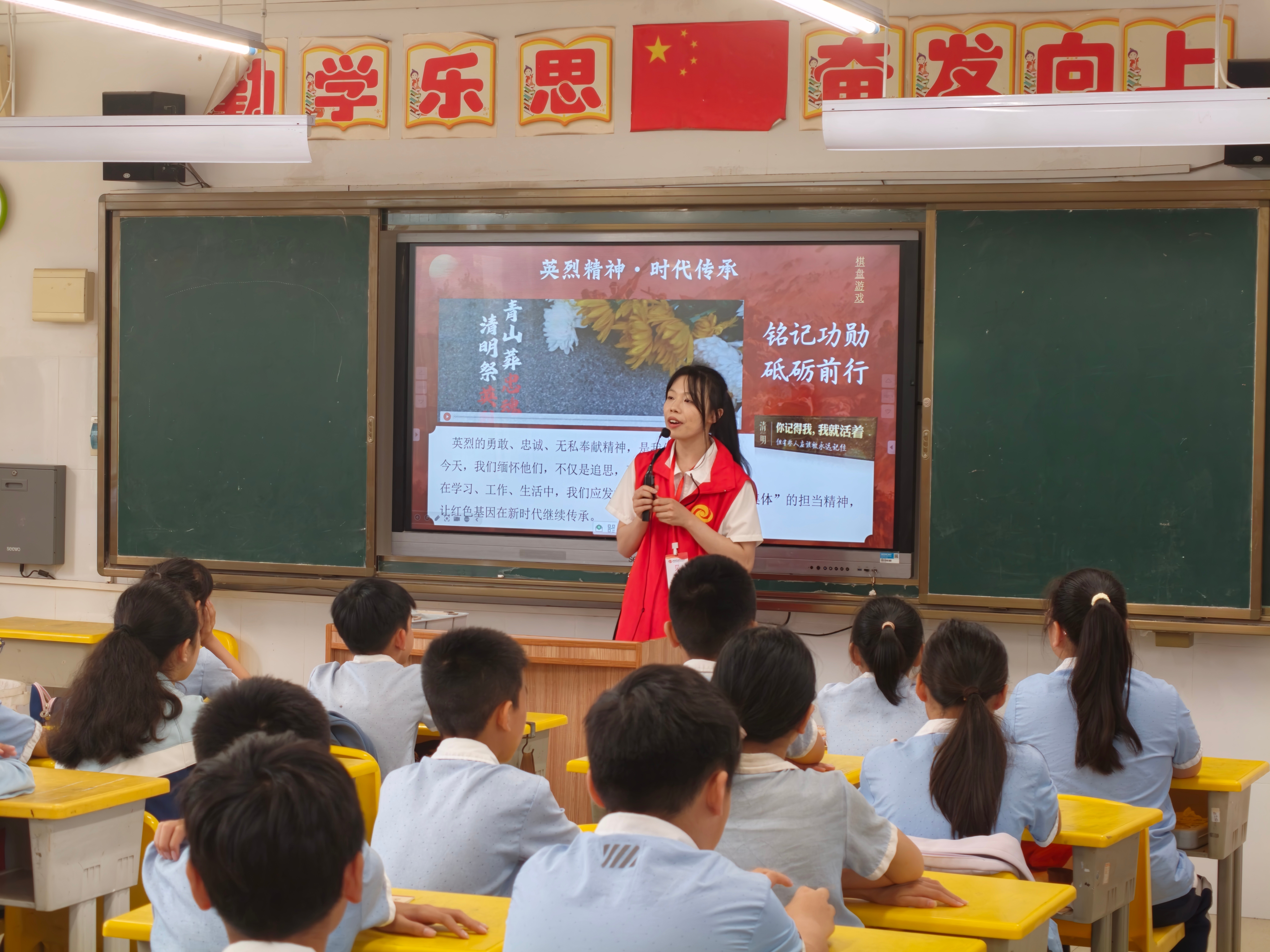 班会以“缅怀革命先烈,传承红色基因”为核心,紧扣清明节缅怀先烈、致敬英雄的传统,结合北海本土红色资源,充分发挥文学院学子专业特长,共分为十二个小组分别进入小学班级开展。