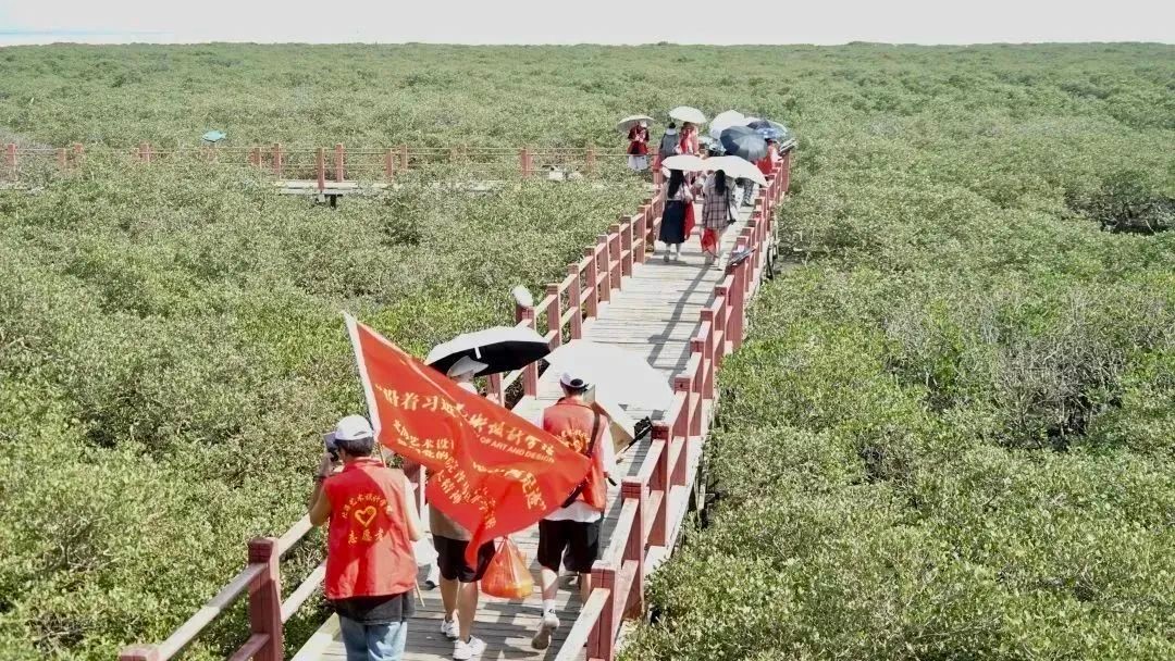 为深入学习党的二十大精神,贯彻习近平新时代中国特色社会主义思想,加强我校“青马工程”队伍建设,提高学员骨干能力素质培养,鼓励学员们成为新时代的合格马克思主义者与优秀青年,提升青马学员团队精神和协作意识。2023年5月27日,北海艺术设计学院青马班学员来到北海金海湾红树林开展“沿着习近平总书记广西足迹”学习宣传贯彻党的二十大精神主题研学活动。