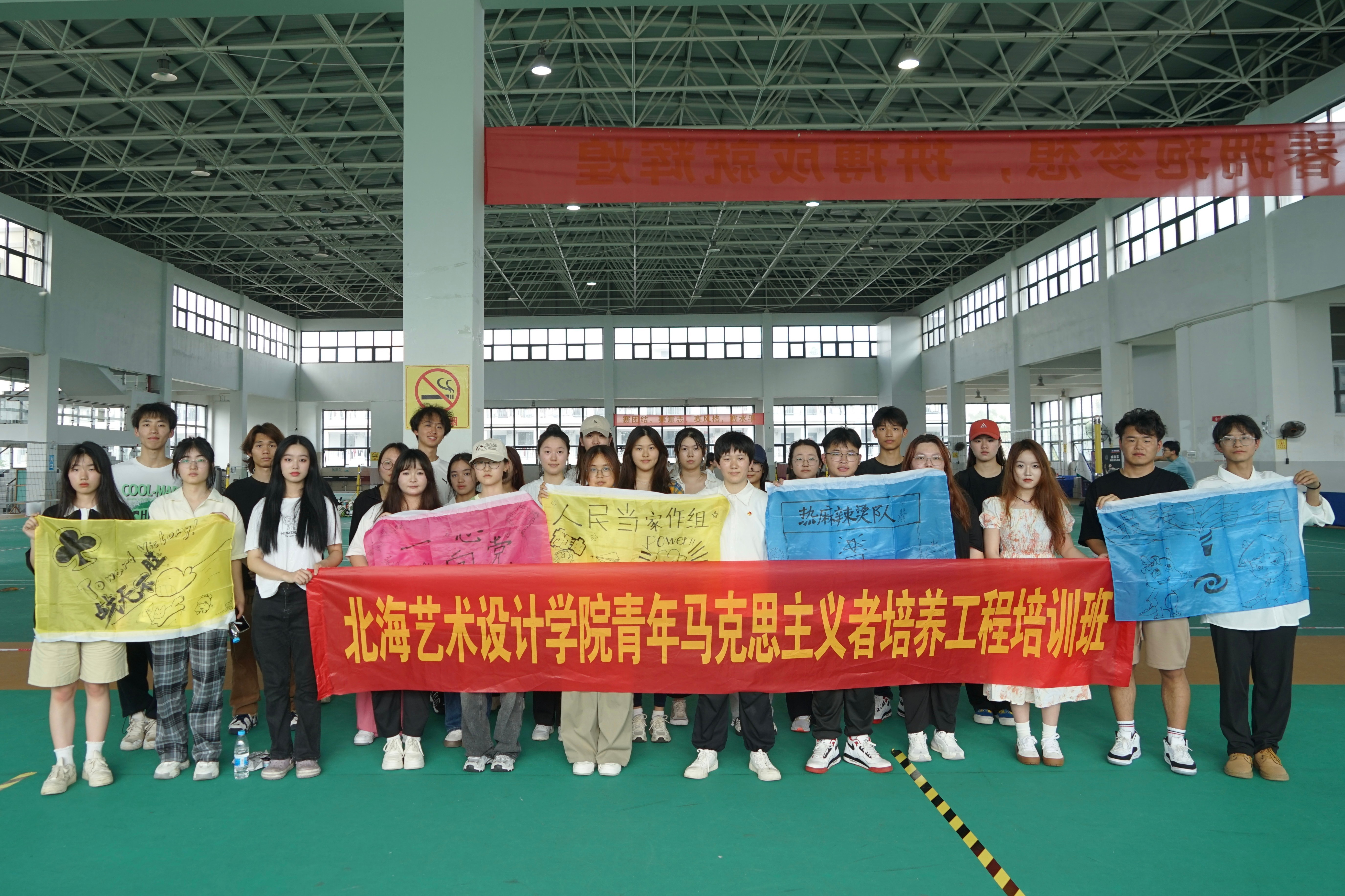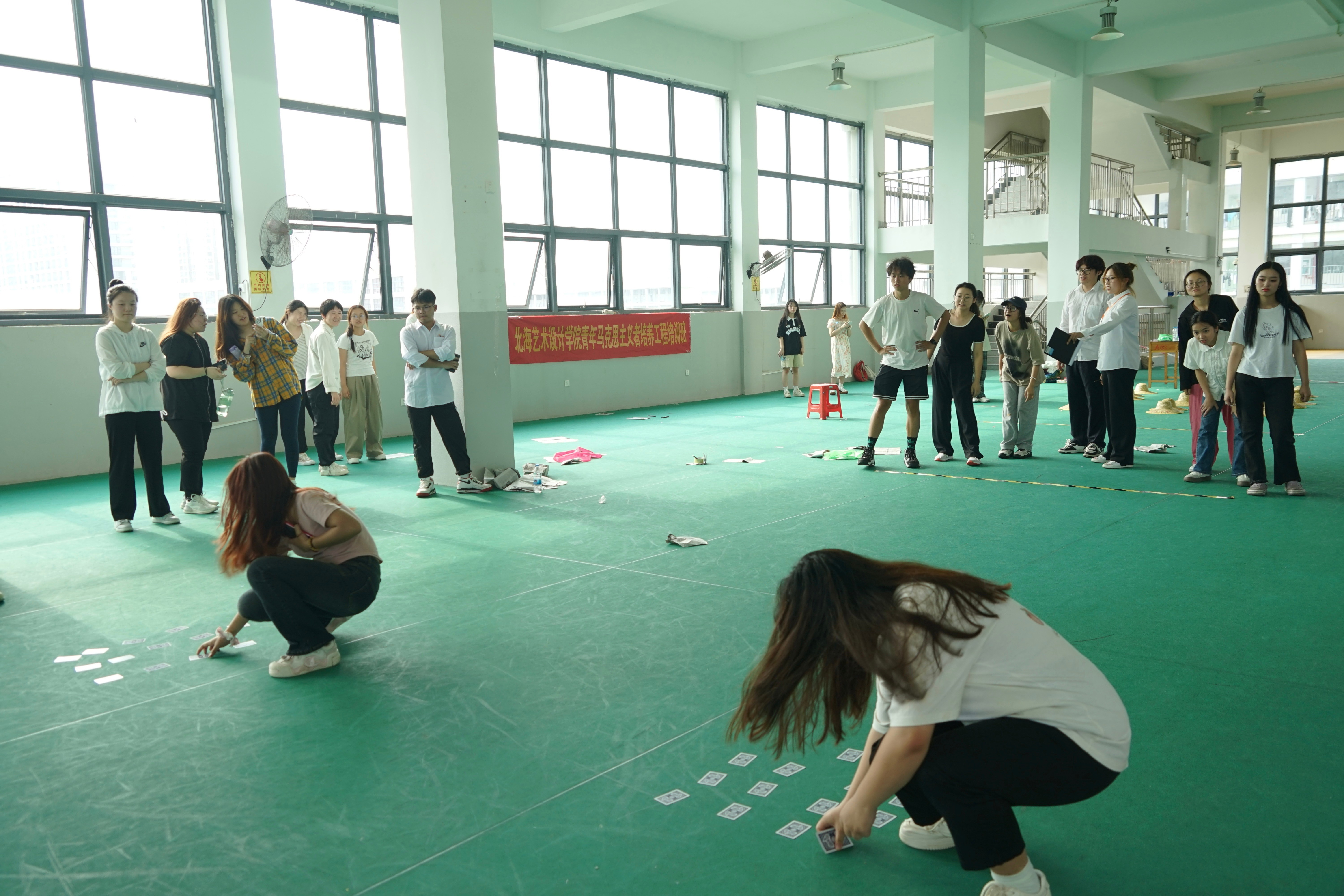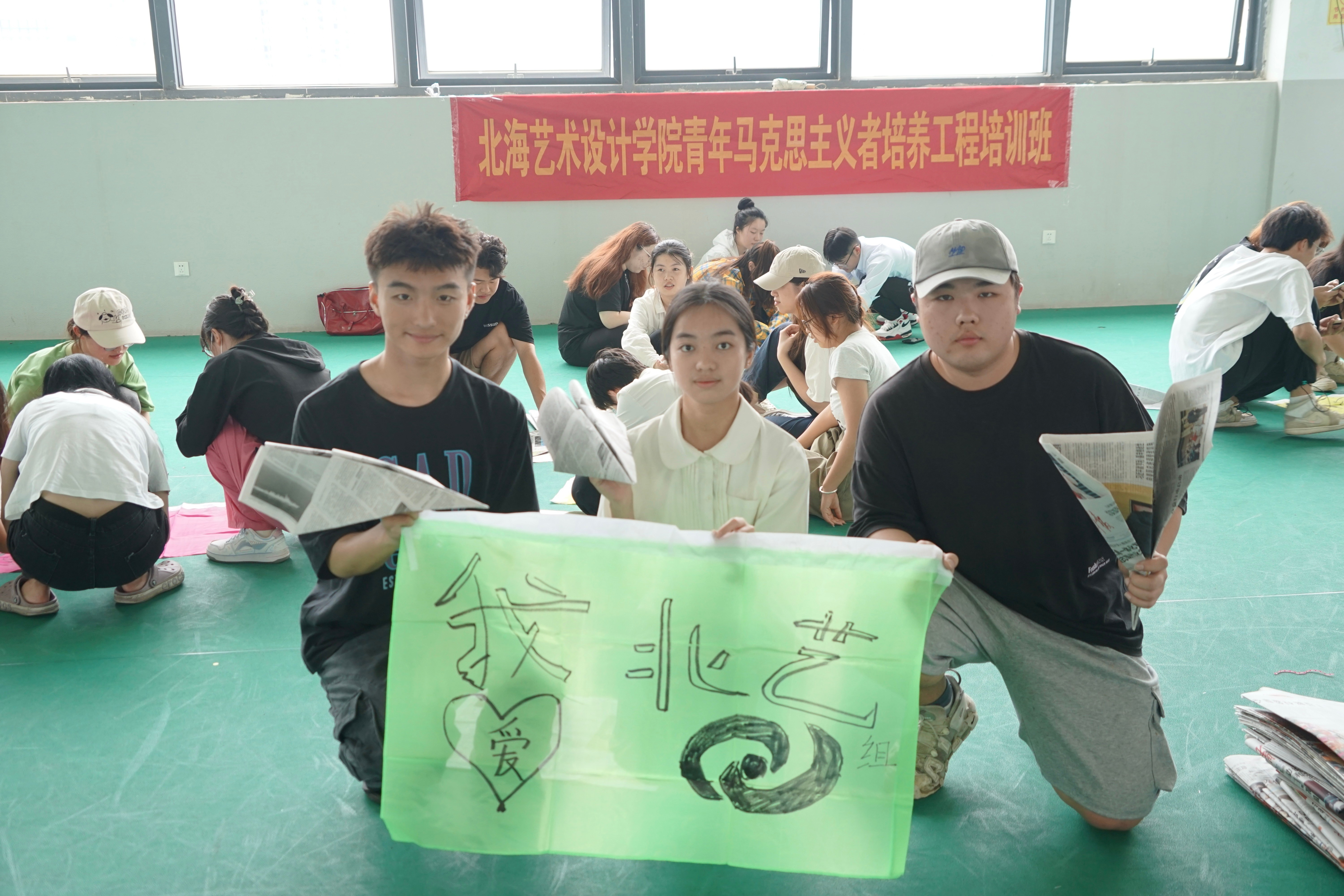 在本次活动中,学员们集思广益、共同合作,尽情挥洒汗水的同时增强了集体荣誉感和自豪感,增强身体素质的同时也提高团队协作能力。期望学员们能够将所学运用到实际当中,努力成为担当大任的时代新人!(王美源/摄)(分组制作团旗与团队标志物)