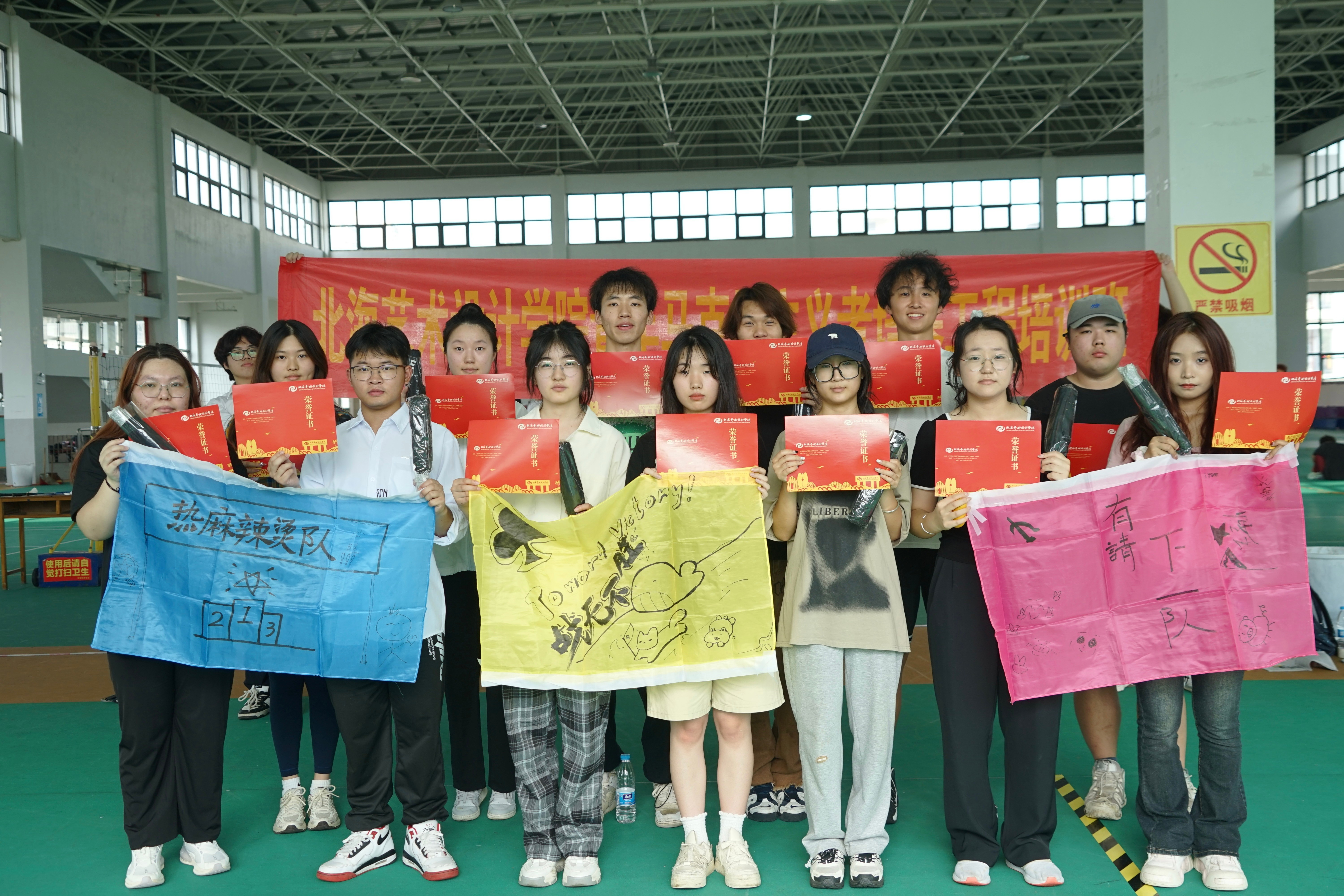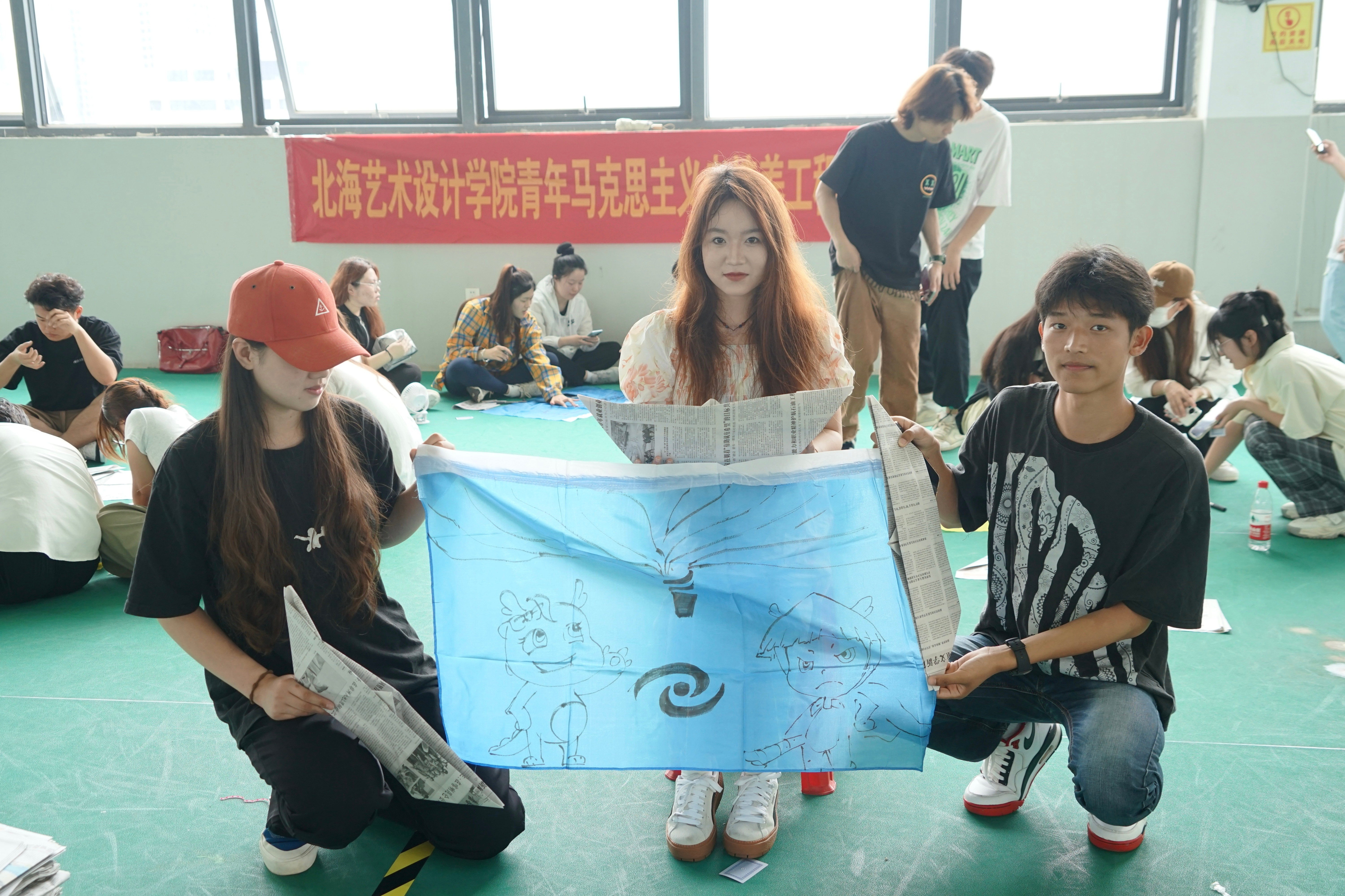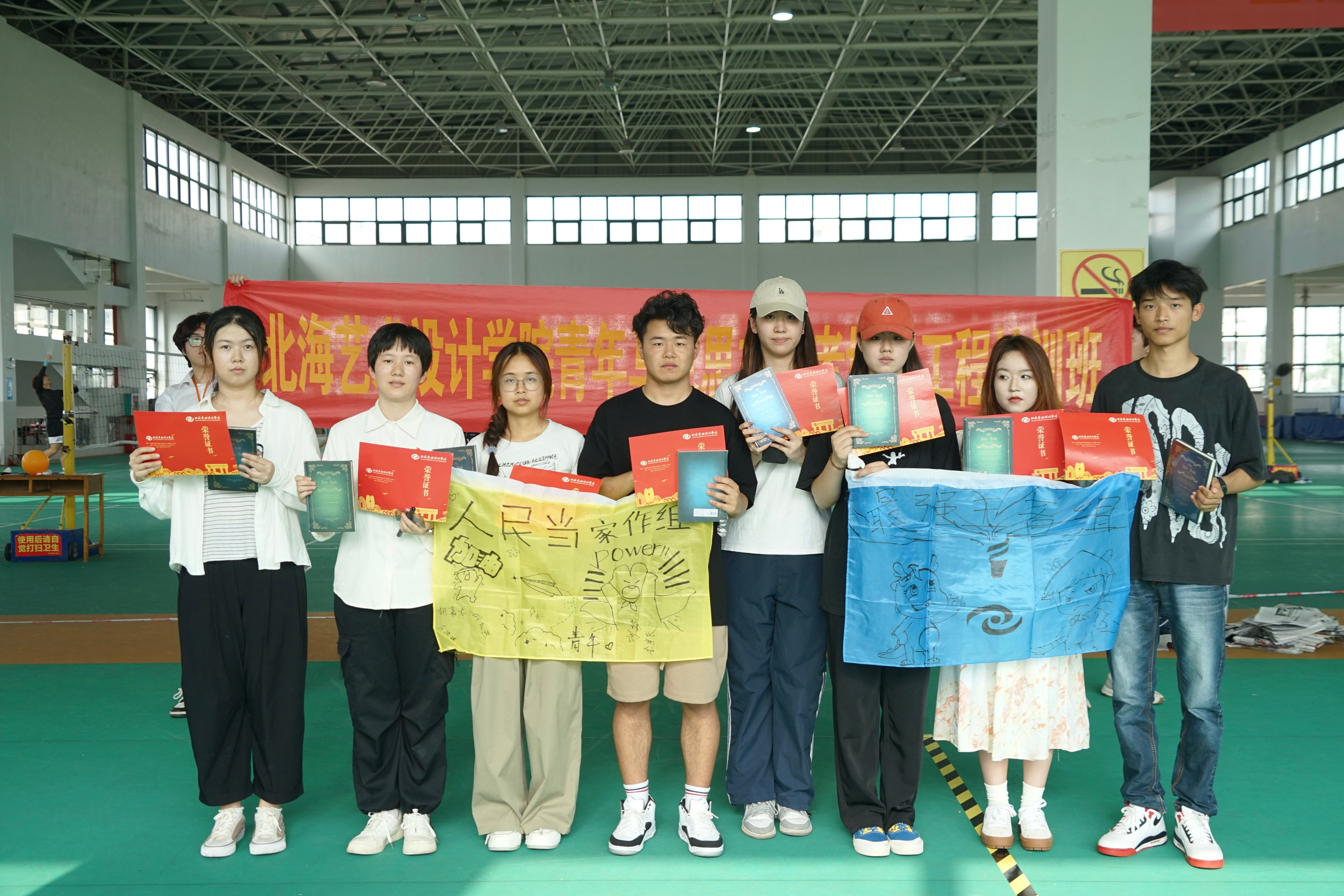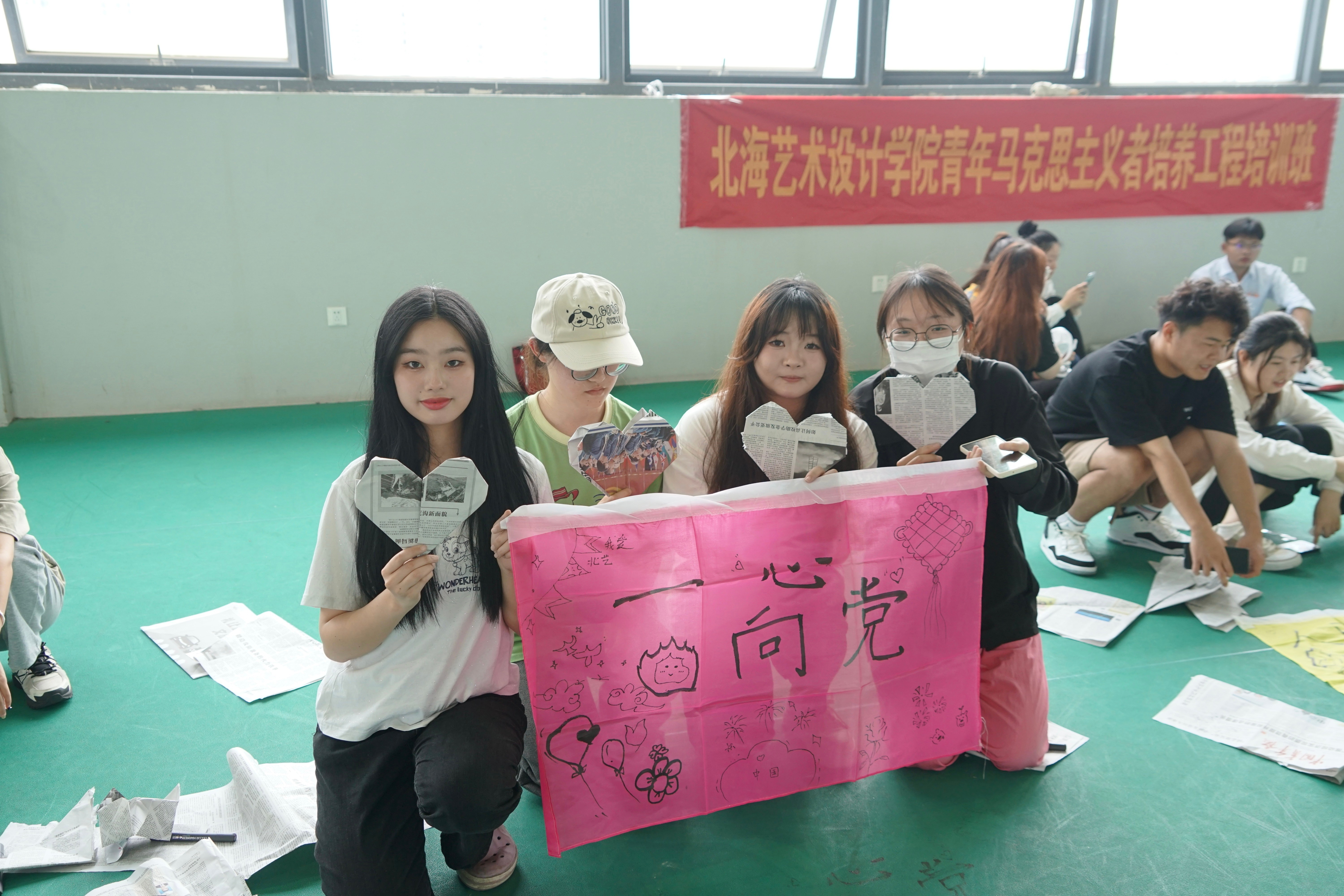 在本次活动中,学员们集思广益、共同合作,尽情挥洒汗水的同时增强了集体荣誉感和自豪感,增强身体素质的同时也提高团队协作能力。期望学员们能够将所学运用到实际当中,努力成为担当大任的时代新人!(王美源/摄)(分组制作团旗与团队标志物)