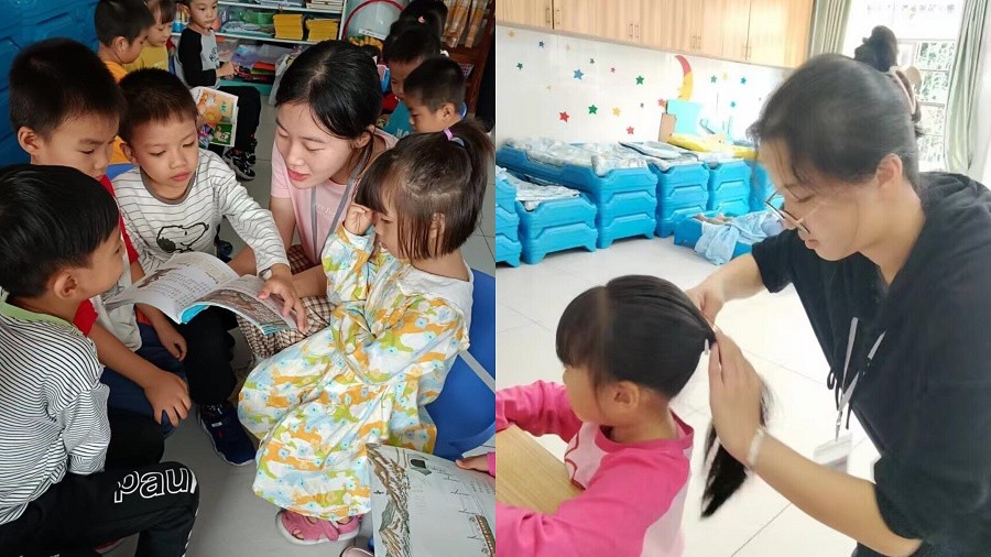 见习生为小朋友读书                                                                   见习生为小朋友梳头