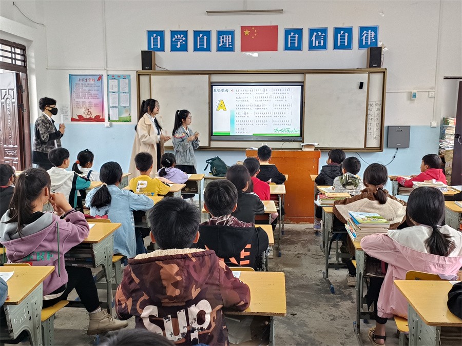 在艺术教育实践教学活动环节,我校学生赴曲樟乡中心小学不同年级开展生动有趣的艺术教育实践活动。他们通过绘画、音乐、舞蹈、手工制作等多种形式,带领孩子们感受多样化艺术的美妙,帮助提升孩子们的学习兴趣和学习积极性。