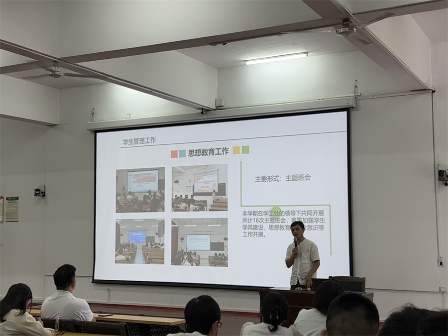 会上,各二级学院学工办负责人围绕本学期辅导员队伍建设、学生思想政治教育、学风建设、学生综合素质培养、宿舍卫生管理、学生日常管理工作、突发事件及应急处理情况等方面依次进行工作汇报;对一年来的工作完成情况、工作亮点、特色、存在的问题等方面进行了分析和总结。