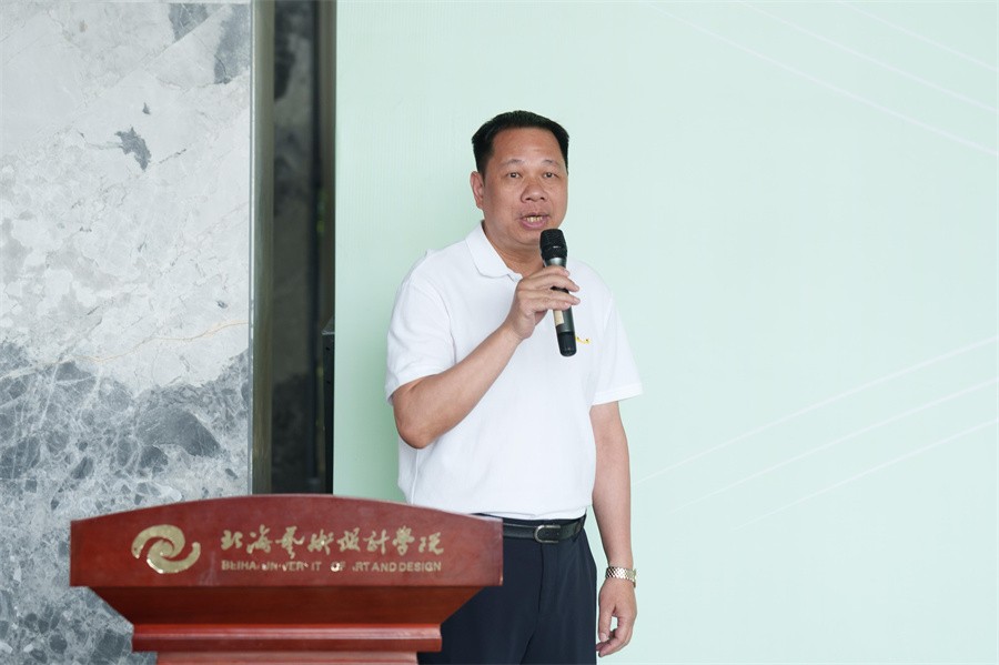 随后,美术学院执行院长龚为在发言中表示,学院坚持以北海独特的海洋文化与西部风情为创作源泉,以“发现美—表达美—传递美”为育人脉络,融入地域文化教学引导学生扎根本土、深植生活。“青衿致远・艺路同行”2025教学成果汇报展汇聚学生佳作,是对学院人才培养成效的检阅。展览见证学院教育理念,也是学子深造启程号角,学院也将继续努力培育更多应用型美术学类人才。