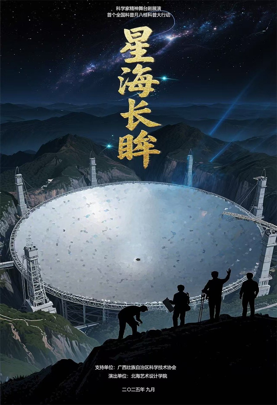近日,首个全国科普月八桂科普大行动在全区范围内如火如荼展开,期间,我校传媒艺术学院积极参与并创排科学家故事舞台剧《星海长眸》,于2025年9月17日至18日在学校完成两场展演,活动圆满落幕。