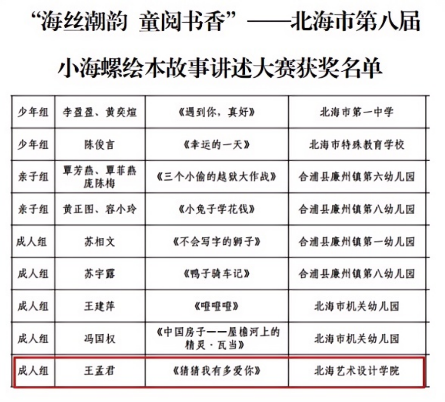 喜报|教育学院学子在北海市第八届小海螺绘本故事讲述大赛喜获佳绩