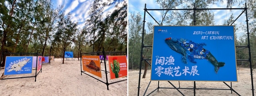 近日,由北海市涠洲岛旅游区管理委员会与我校书法学院联合开展的“2025涠洲岛闲渔零碳艺术展”在蓝桥游艇俱乐部外海滩举办。活动通过艺术创作传递海洋环保理念,探索校地协同推进生态文明建设的创新实践路径。