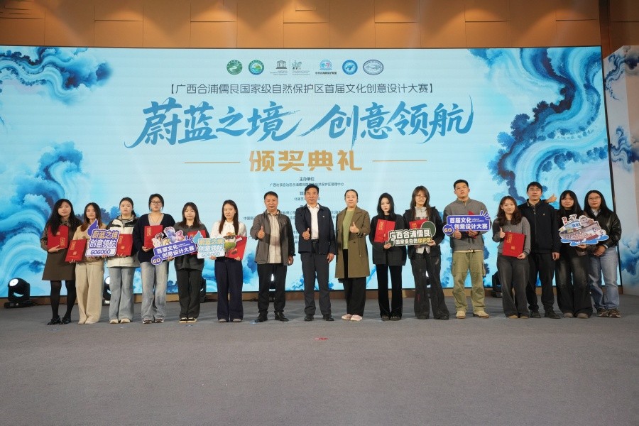 1月15日,“蔚蓝之境·创意领航”广西合浦儒艮国家级自然保护区首届文化创意设计大赛颁奖典礼圆满落幕。我校造型艺术学院师生凭借扎实的专业功底与创新的设计理念脱颖而出,揽获特等奖1项、一等奖1项、二等奖1项、三等奖6项及入围奖8项,用设计创意助力广西合浦儒艮保护区生态保护创新发展。我校副校长陶立阳,造型艺术学院院长邓渠成、副院长钟远诚、综合办主任曾思铭及部分师生应邀出席典礼。