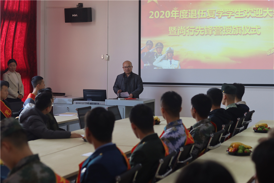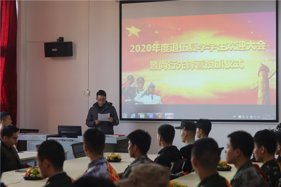 我校召开2020年度退伍复学学生欢迎大会暨尚行先锋营授旗仪式