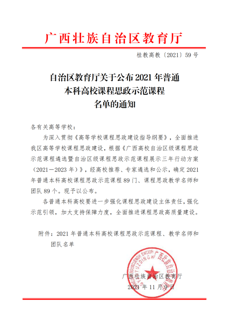 近日,自治区教育厅公布了2021年普通本科高校课程思政示范课程名单,我校美术学院《风景写生》被教育厅认定为2021年自治区级课程思政示范课程。龚为、肖玺、唐海、姜献生、罗秋梅、张湘中、陈建江、段凝老师获得自治区课程思政教学名师称号,并获思政教学团队称号。这是我校在自治区级课程思政建设上的新突破。