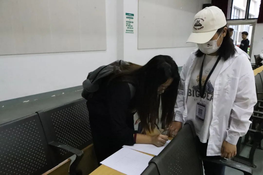 听了现场学长学姐们学习经验的分享,同学们积极地向学长学姐们询问和探讨自己在日常学习中遇到的问题。